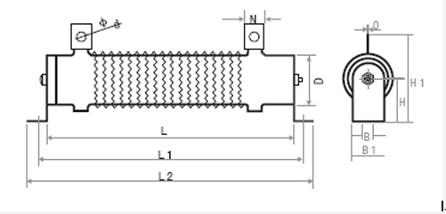 波紋電阻采用陶瓷管作為骨架,用制作成波紋狀合金電阻絲均勻的繞制在骨架上,表面涂有耐高溫的絕緣涂料,安裝方便,具有良好散熱能力,可用于變頻器制動,伺服系統(tǒng),電源等電氣回路 簡介: 在圓柱形的瓷管上固定了兩個引出端子,陶瓷管表面上纏繞了扁帶波浪形狀的合金電阻絲,并在其表面被覆了具有阻燃、耐高溫特性的涂層。陶瓷管作為電阻絲支架的同時,又具有散熱器的功效。本品可按照客戶的要求定制。本品適用于模擬負荷實驗、設備放電、自動控制、變頻器能耗制動等。 產品尺寸圖