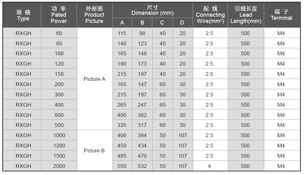 鋁殼電阻 金屬外殼電阻器采用鋁合金外殼,外形美觀大方,易于安裝可組合使用??捎糜谧冾l器制動,伺服,電源等電氣回路,具有好的安全性 簡介: RXGH系列電阻器采用整體全封閉結構,其耐氣候性、耐振動性、安全性、環(huán)境適應性均優(yōu)于傳統(tǒng)電阻器。廣泛應用于電源變頻器、伺服系統(tǒng)等高要求的電氣回路中,并能適用于惡劣的工作環(huán)境。易緊密安裝、并可附加散熱器。外形美觀大方,是電氣工業(yè)理想的配套產品。 型號說明